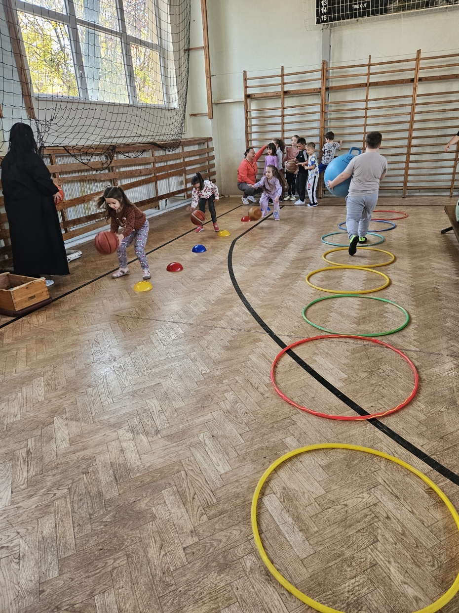 A délelőtt során a gyermekek több állomáson is részt vettek, ahol iskolánk diákpresbiterei nagy - nagy szeretettel fogadták őket. A tornateremben mozgásos feladatok, akadálypálya, labdajátékok és tánctanulás várta a kicsiket. Mindenki megtalálhatta a számára legkedvesebb mozgásformát – volt, aki a labdarúgásban jeleskedett, mások tánclépéseket tanultak mosolyogva.