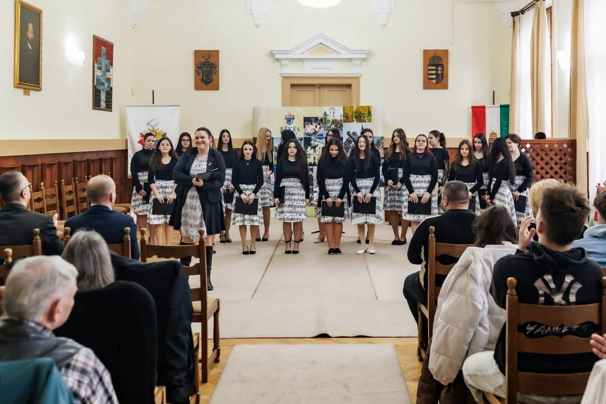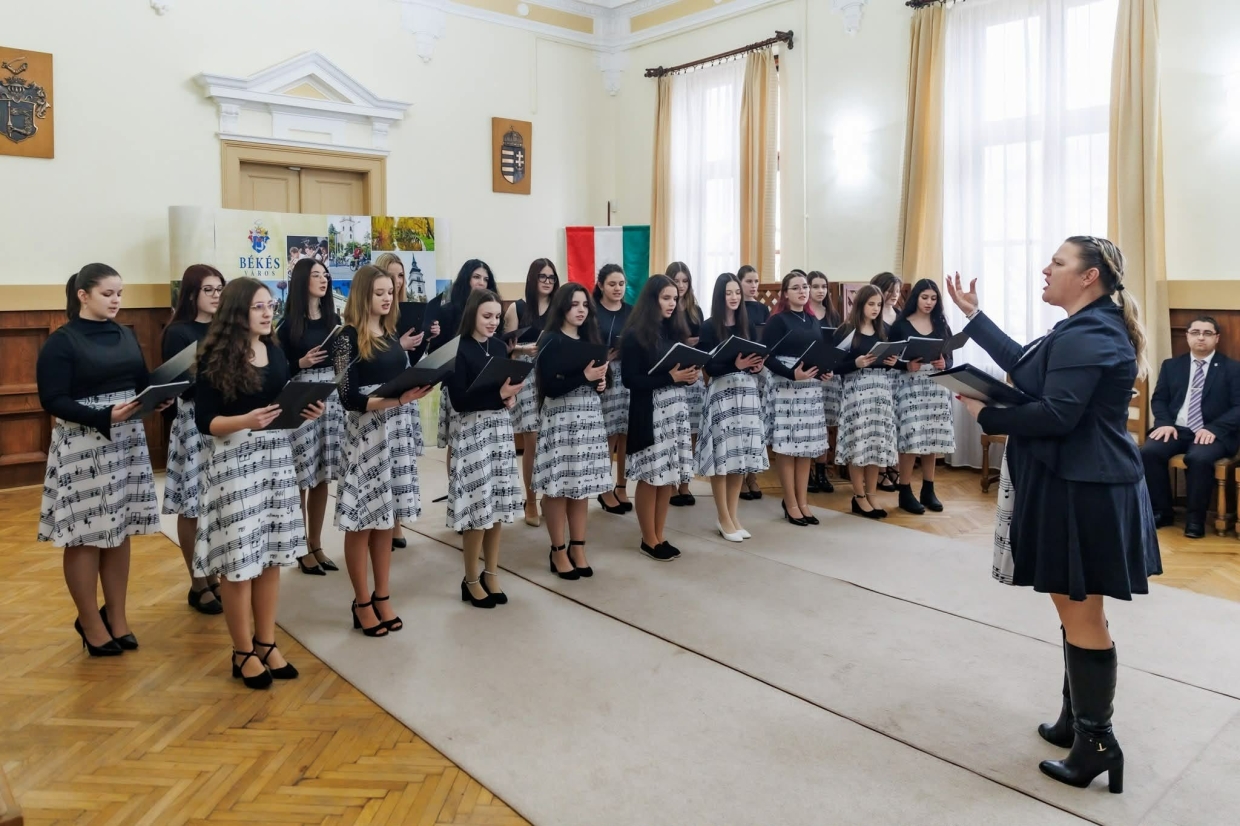 A megemlékezés Békés város Polgármesteri Hivatalának dísztermében került megrendezésre. A köszöntő és ünnepi megemlékező beszédek után a Református Gimnázium Leánykara két katonadallal rótta le tiszteletét, melynek felkészítő tanára Szabó Edina, karvezető volt.